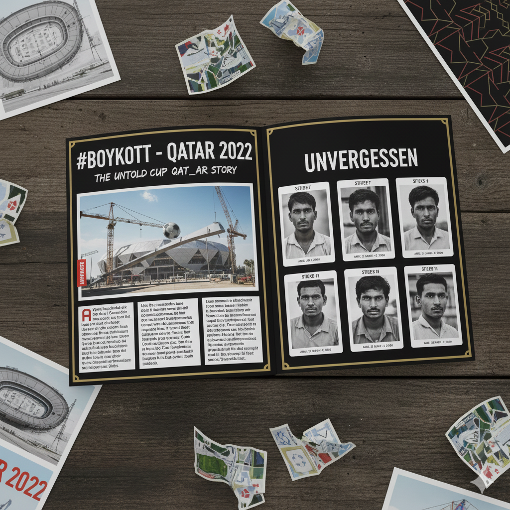 A conceptual idea that deliberately hijacked one of football’s most beloved rituals: the Panini sticker album - and turned it into a brutal, emotional confrontation with the reality behind the tournament.